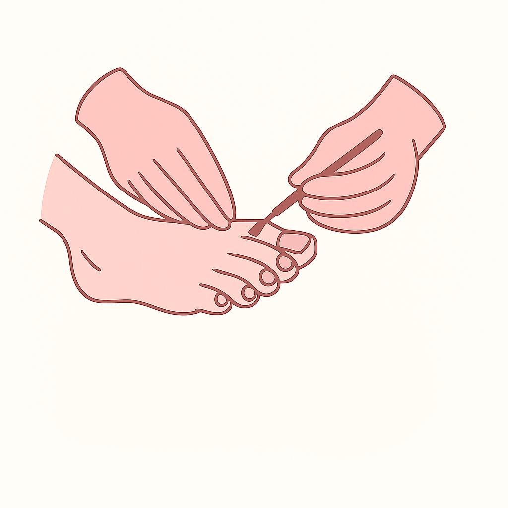Corte e lixamento das unhas, remoção de cutículas, cuidados com calcanhar e esmaltação. Pés bem tratados e visual impecável.